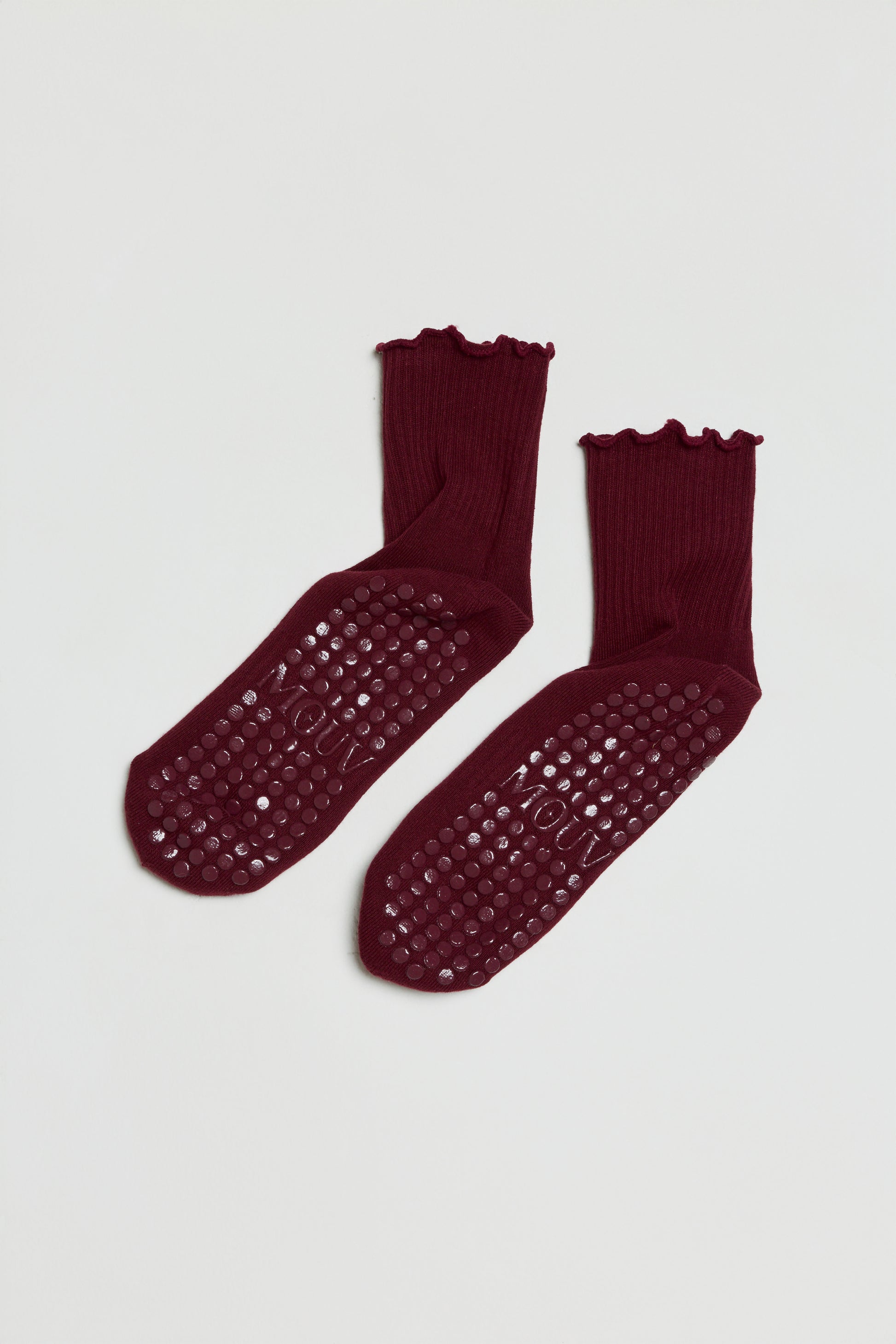 Elevate your everyday with our Ruffle Crew Socks in Maroon.
